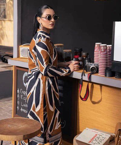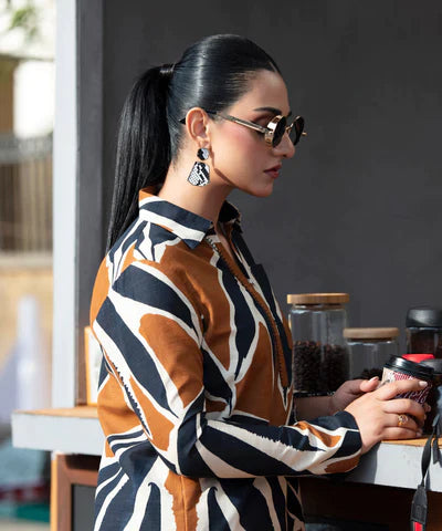 - For a stellar statement this fall, adorn our mustard and blue shirt piece accented with artistic brush strokes.